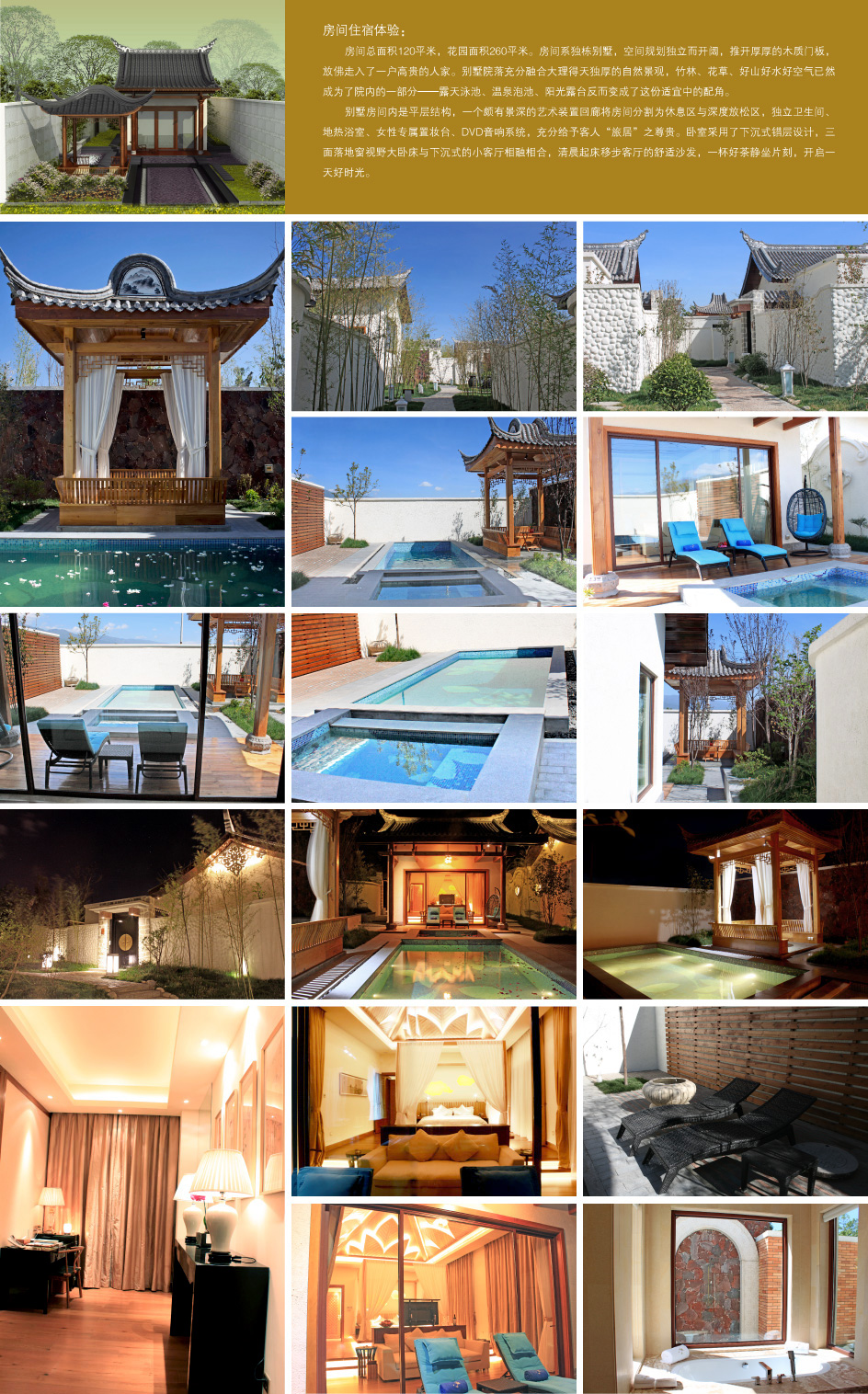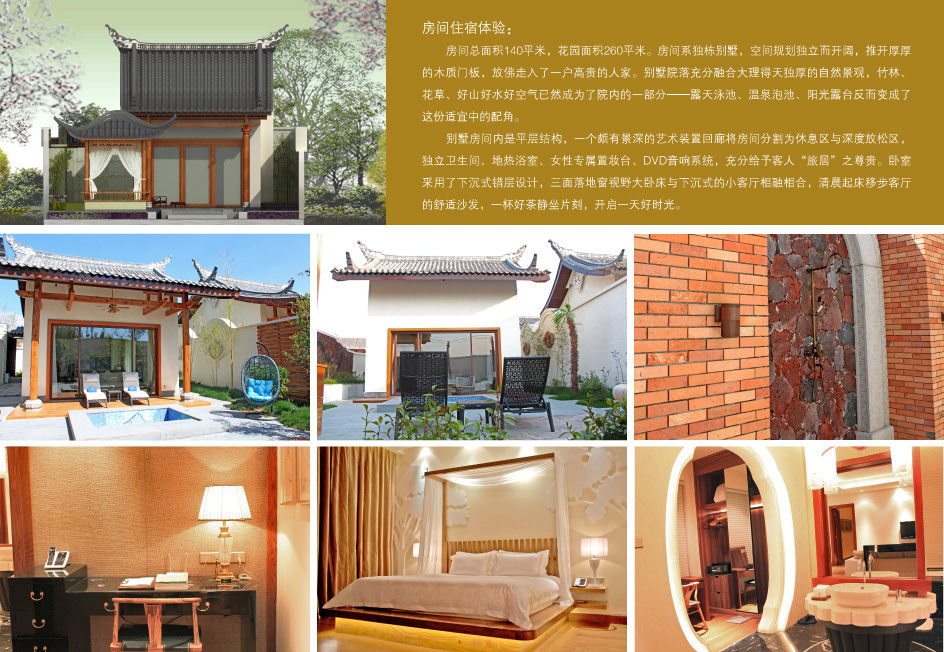 配套设施:独立花园露台、公共生态花园、独立卧室、独立泡浴、淋浴、地热设备、多功能播放器