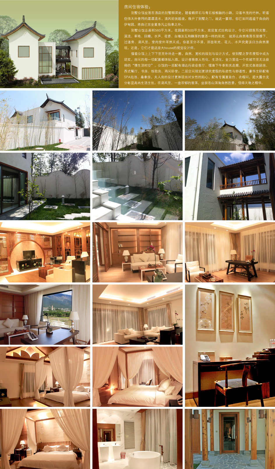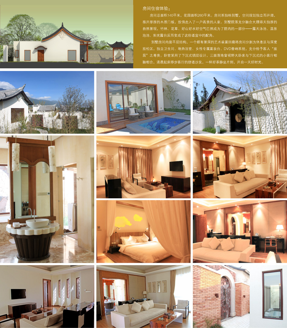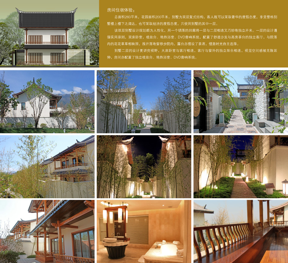 配套设施:独立花园露台、公共生态花园、独立卧室、独立泡浴、淋浴、地热设备、多功能播放器