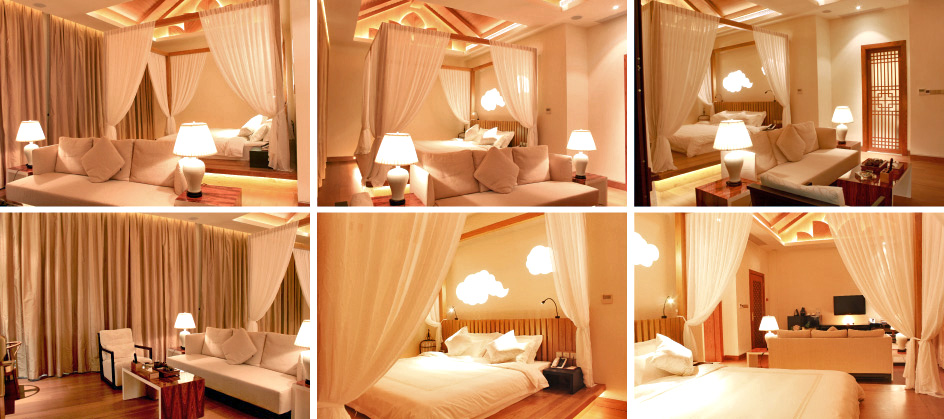 配套设施:客厅、走廊、厨房、餐厅(配有点歌系统)、主卧(桑拿房)、书房、夫人房、露台花园